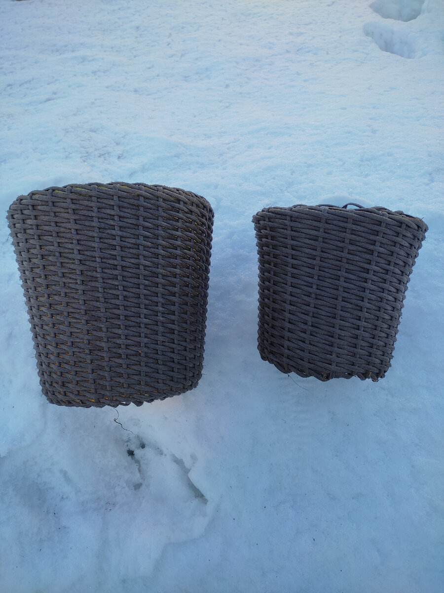 Пора готовить кашпо для улицы. Мне очень нравятся плетёные из искуственного ротанга. Во-первых, можно обплести любую непрезентабельную ёмкость. Во-вторых, кашпо больших объемов стоит дорого или очень дорого, а сделанное своими руками в разы дешевле. В-третьих, оно долговечное, не страшны дождь и солнце. В том году я обплетала 10 литровое ведро и большой транспортировочный горшок. Моим гераням в них нравилось. В этом году я ещё сделала два. Первое было 7 литровое ведро. Технологию я описывать не буду, мастер-классов много в интернете. Мне не нравилась форма ведра, я решила с помощью трубки для утепления труб сгладить форму. Розовое ведро сверху на бортике немного проглядывало, поэтому пыльнула чёрной краской из балончика. Следующий раз верх разноцветных вёдер надо красить зараннее. Вот результат. Второй был транспортировочный горшок из под вишни. Тоже 7 литров. Получился такой. Вот такие горшки будут украшать у меня входную зону в этом году. Спасибо, что заходите в гости👍, всем