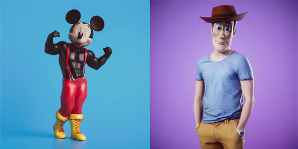 Художник изобразил 14 персонажей мультфильмов с реальными пропорциями человеческого тела