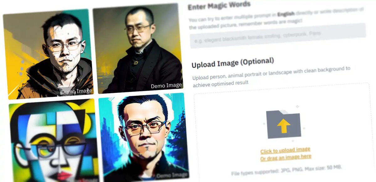 Кроме того, бесплатный NFT можно создать из загруженной фотографии человека, животного или пейзажа. На данный момент каждый пользователь может создать только один NFT на основе ИИ. Но после твита CZ поток пользователей бросился генерировать бесплатные NFT, перегружая систему.