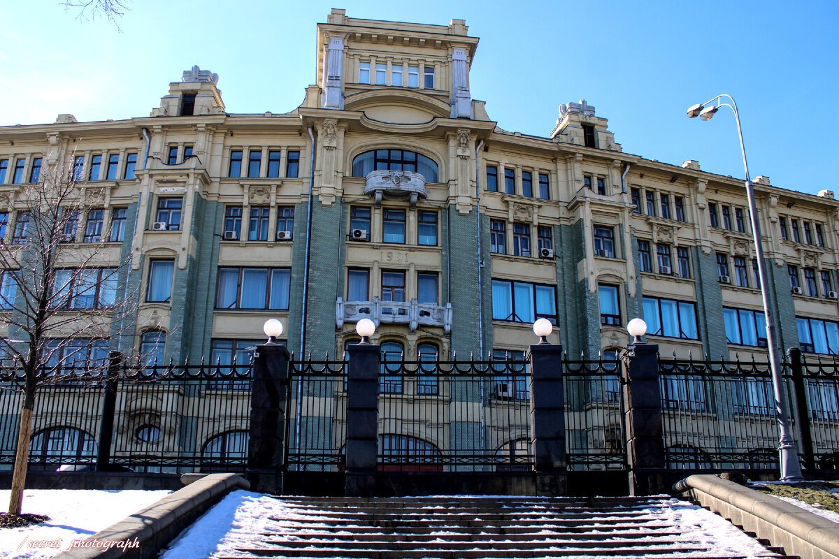Каждый раз, гуляя вдоль Старой площади, любуюсь этим домом, стоящим на возвышенности. О нем, выстроенном в стиле модерн в 1901 году «нашим архитектурным всё» Федором Осиповичем Шехтелем, в сентябре 1903 года писала газета «Новости дня»: На Старой площади введено в эксплуатацию 5-этажное здание Московского страхового общества, построенное по проекту академика архитектуры Ф.О. Шехтеля. Фасад дома облицован глазурованным серо-зеленым кирпичом, главный вестибюль украшен витражом, изображающим Кремль при заходе солнца. Значительная часть здания сдана Богородско-Глуховской мануфактуре. Первые три этажа с подвалами рассчитаны на торговые помещения и конторы, четвертый и пятый – заняты гостиницей «Боярский двор» Когда здание только строили, оно как раз тянулось вдоль тогда еще существовавшей Китайгородской стены. И оттого, что с площади была видна лишь верхняя часть здания, выступающая над древней кирпичной кладкой, Шехтель решил придать своему новому творению облик средневековой крепости. И е