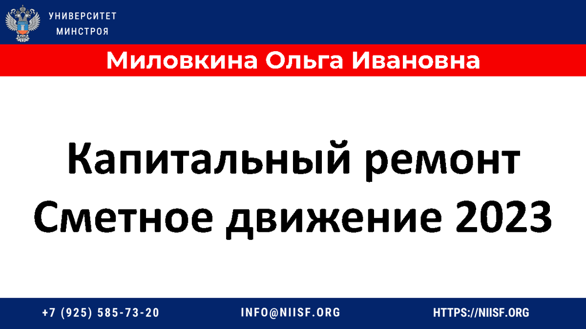 Вебинар "Капитальный ремонт. Сметное движение 2023". Мероприятие проходит также в рамках курсов повышения квалификации (Удостоверение) и профессиональной переподготовки (Диплом) Университета Минстроя. Спикер: Миловкина Ольга Ивановна - Эксперт Университета Минстроя НИИСФ РААСН, Специалист по ценообразованию жизненного цикла объекта строительства. ВИДЕО