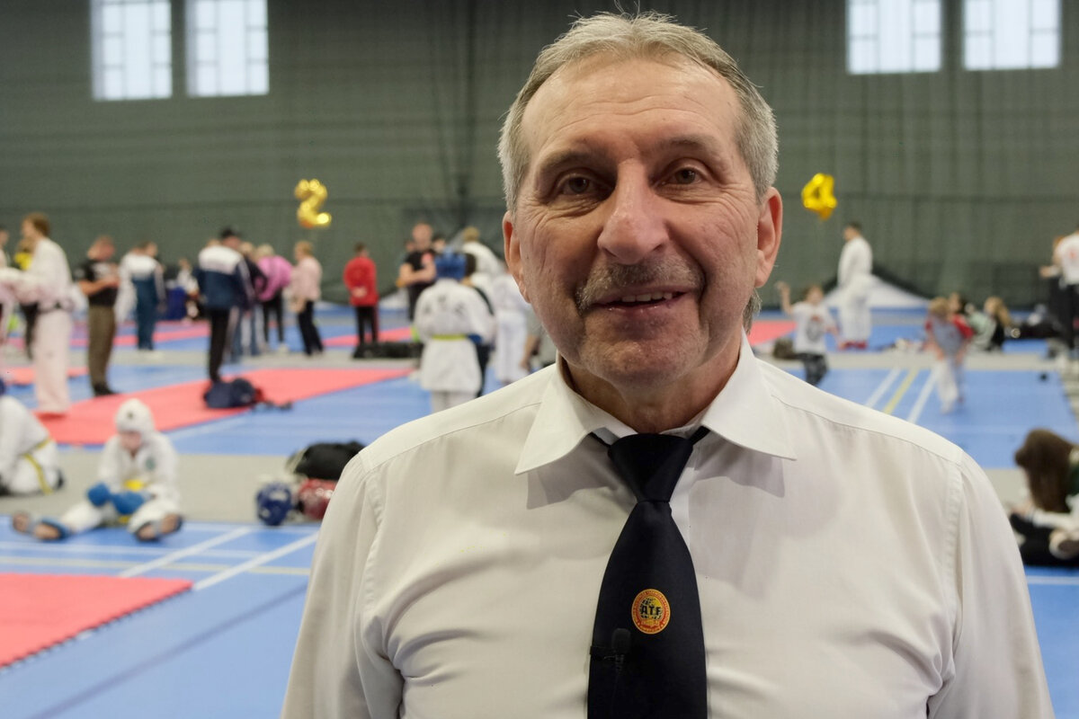 Вячеслав Николаевич из героического Волгограда, в тхэквондо он 34 года. Наставник привез на соревнования свою команду, рассказал, почему без техники тхэквондо не будет успеха в других единоборствах, куда подевались командные «Внимание!, «Смирно!» и анонсировал турнир «Ни шагу назад».