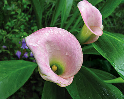 Их выращивают в открытом грунте, в контейнерах и как комнатное растение. Достоинством каллы является пластичность этого растения. В зависимости от особенностей содержания калл, от времени их посадки и периода покоя, цветение можно получить в разные месяцы. Для посадки выбирают полутенистые места с ярким рассеянным светом, почва слабокислая. Каллы влаголюбивы, отлично растут у воды и различных искусственных водоемов. В апреле клубень необходимо разбудить, высадив его в контейнер с землей, когда угроза заморозков пройдет, можно высадить в открытый грунт. Перед заморозками клубни выкапывают, промывают и убирают в сухую тёмную кладовку, через 1,5 недели нужно обрезать корни и листья, убрать на хранение при температуре +3°С +5°С. Хранят клубни до высадки в холодильнике в ящике для овощей, предварительно завернув в салфетку, не допуская их пересыхания. В период покоя растение сбрасывает листья. Заказать клубни калл.