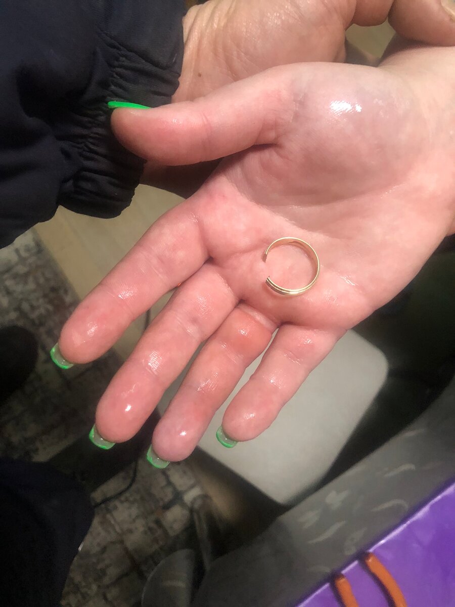 Начальник 308-й пожарно-спасательной части Олег Рябцев рассказал, что через единую службу спасения «Система-112» около десяти часов вечера за помощью обратилась пострадавшая и сообщила, что у нее распух безымянный палец, и она не может снять обручальное кольцо. «По прибытию работников противопожарно-спасательной службы ювелирное украшение плотно сидело на опухшем женском пальце. Дежурная смена приняла решение для оказания помощь воспользоваться гравировочной машинкой. Охлаждая метал под струей холодной воды спасатели аккуратно распилили кольцо, отжали его плоскогубцами и освободили палец молодой женщины, медицинская помощь пострадавшей не потребовалась», – рассказал Олег Рябцев.