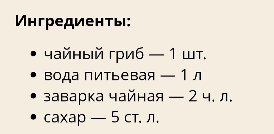 Нужна помощь, чтобы понять, как правильно этот Чайный гриб заваривать. Вот, например, рецепт с сайта, где рецепты разные: Сахара, конечно, много. Но, говорят что, этот гриб сахар любит. Сильно сладкий получается. Я не против, если можно убавить количество сахара. И чай, как пишут должен быть чаем. *** Попытка найти что-то относительно - можно ли меньше сахара, привела к такой статье: Так что там правильно с чаем и сахаром должно быть? *** Спасибо за ответы!