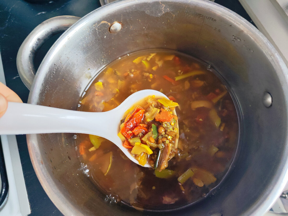 Я любитель лёгких супов без мяса. Часто супы варю на овощном бульоне, если так можно сказать. Варю овощи, иногда делаю зажарку и бросаю в суп дополнительные ингредиенты для сытости: фасоль, чечевицу, мелкие макароны, картофель. получается сытный постный суп. Фасоль почти всегда имею в морозилке замороженную. Один раз варю надолго и потом расходую. Из одного пакета сухой фасоли в 800 гр получается целая 3 литровая кастрюля вареной фасоли. Супер ингредиент, всегда удобно достать из морозилки и кинуть в блюдо. Можно использовать консервированную фасоль. Красная чечевица хороша тем, что быстро разваривается и дает объем супчику. Макароны или картофель кидаю по настроению. А сейчас расскажу про особые ингредиенты простого и быстрого супа. Летом в сезон насушила в дегидраторе овощей. Сушу их в сушилке Polaris. Ей уже примерно 4 года. Вещь крепкая, за это время не сломалась, функции свои добросовестно выполняет. Ссылка на аналогичный дегидратор ниже. Овощи беру разные, иногда дарят кабачки с