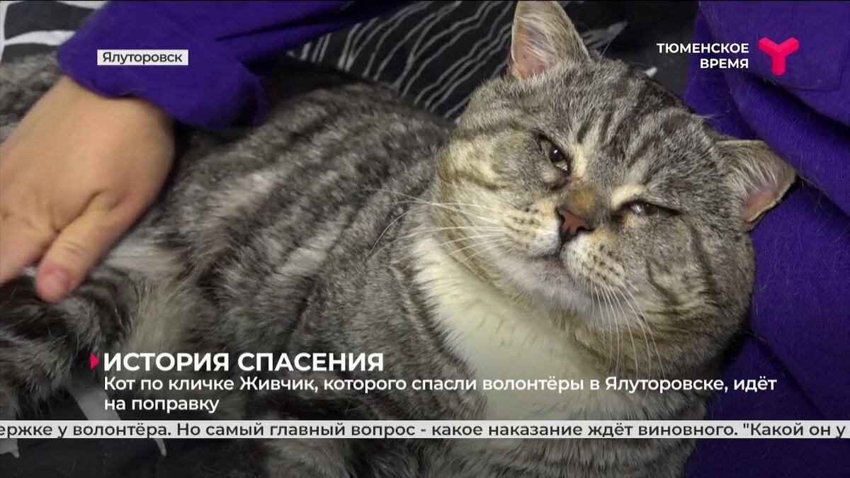 Сейчас животное находится на передержке у волонтёра Смотря на эту довольную морду, трудно поверить, что месяц назад полосатый выглядел так. Его чуть не убили. Шею кота стянули верёвкой. Животное закрыли в коробке. И выбросили в мусорный бак. Его случайно обнаружили прохожие.