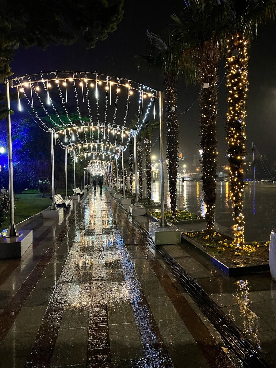 Для меня Ялта - единственный город в Крыму, в котором ночью гулять приятно, интересно и красиво. Набережная блестит вся. Такие украшения понравятся не только детям, но также и взрослым. В межсезонье ходишь по полупустым аллеям и наслаждаешься видами. Нам немного не подфартило в поездку с погодой и весь вечер и всю ночь лил проливной дождь, но знаете такая атмосфера придаёт романтики прогулке по зонтом. Некоторые декорации остались после новогодних праздников и их не снимали, хотя задаешься вопросом, зачем убирать такую красоту. Куда не повернись, всё блестит. Ялта точно ночью не спит, люди гуляют как утром, так и в тёмное время суток. Приезжайте и вы любоваться этой красотой.