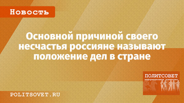 Каждый пятый россиян, считающий себя несчастным, винит в этом положение дел в стране.
