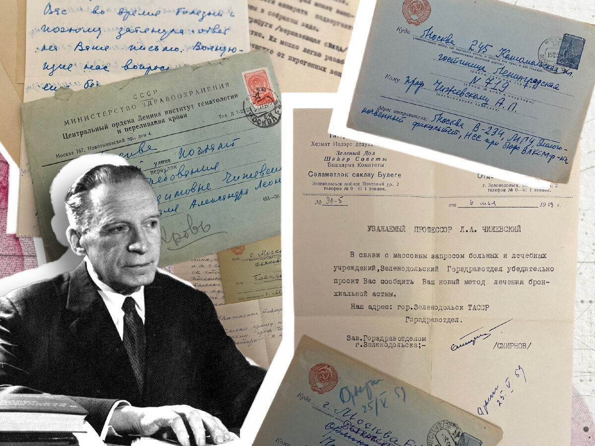 Новые методы лечения бронхиальной астмы, структурный анализ движущейся крови, изготовление аэроионизатора. 🖋 С такими вопросами обращались ученые и сотрудники научных центров всей страны к А.Л. Чижевскому в 1958-1960 годах. В этот период Александр Леонидович активно переписывался со многими институтами и университетами. 30 таких писем пополнили коллекцию редких экспонатов нашего музея. Переехав из Караганды в Москву, Чижевский начал активную деятельность по практическому применению аэроионизации, изобретенного им метода электроокраски, продолжил исследование структуры движущейся крови. Так, в мае 1959 году Чижевскому пришло письмо из Зеленодольска ТАССР в котором его убедительно просят сообщить о новом методе лечения бронхиальной астмы. Переданы письма, в которых научный сотрудник из института гематологии и переливания крови Р.А. Рутберг обращается к Чижевскому с просьбой обсудить вопросы, которые он излагал в монографии "Структурный анализ движущейся крови". Также была корреспонденци