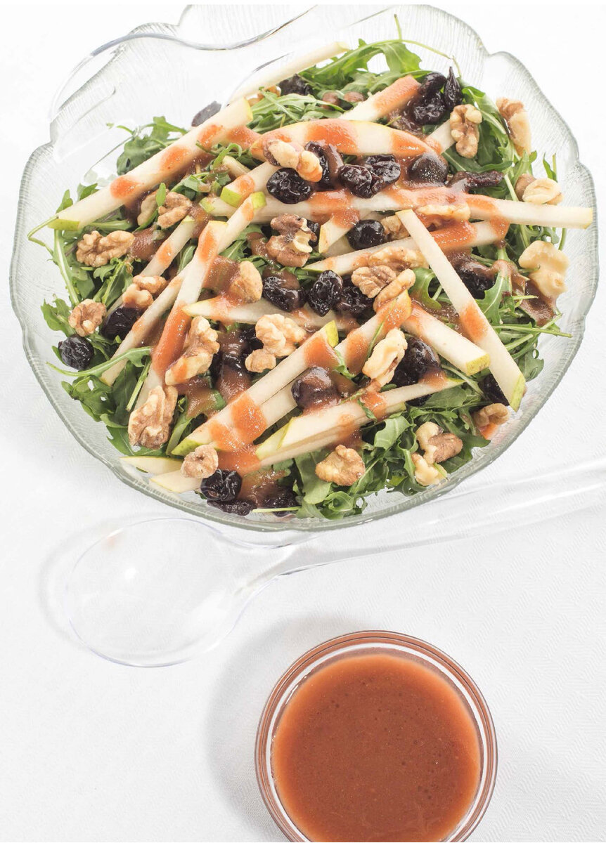 Салат из груш и грецких орехов с рукколой и бальзамическим соусом (рецепт 7) для щелочной диеты