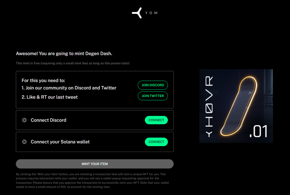 - Выполняем задания, после чего клеймим NFT. https://mint.yom.ooo/?promo=c390cc53-2bcc-4e46-8d25-c8c7ed3f3aed