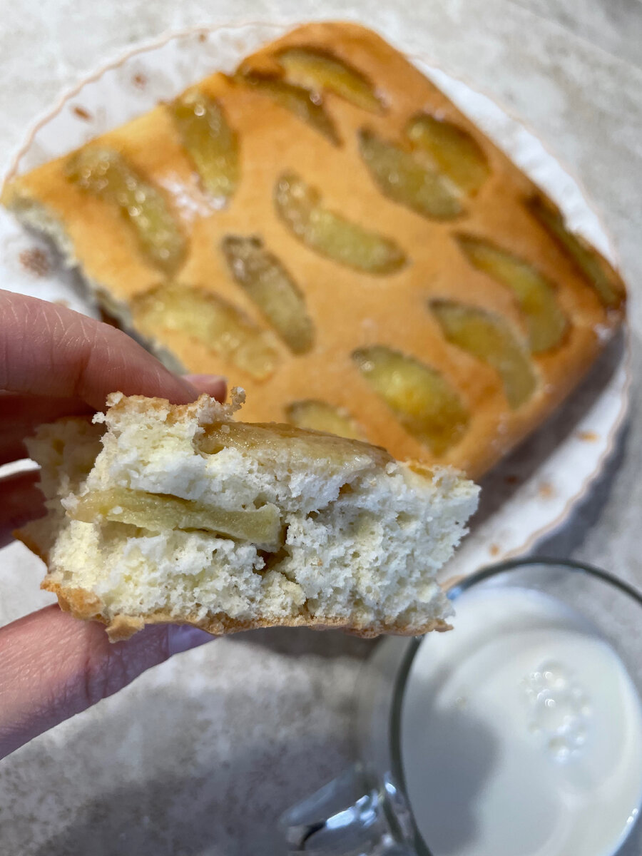 Нежный вкусный бисквитный пирог с яблоками простой в приготовлении. Вообще этот рецепт я взяла из маминой советской кулинарной книги и со временем модернизировала. Самое главное в приготовлении хорошенько взбить белки. Сейчас подробно всё расскажу. Ингредиенты: Приготовление: Сразу ставим духовку на 180 градусов, пусть разогревается. Чистим яблоки 🍎 . Режем их тонкими дольками. Форму для выпечки смазываем сливочным маслом и посыпаем манкой. Выкладываем 1/3 всех яблок на дно формы. Белки отделяем от желтков. К желткам высыпаем 1/4 стакана сахара и растираем до светло-желтой пены. Белки взбиваем с щепоткой соли и чайной ложкой лимонного сока несколько минут до стойких пиков, затем досыпаем оставшиеся 1/4 стакана сахара и взбиваем еще немножко. Затем к желткам добавляем 1/3 от взбитых белков, 1/2 стакана муки, 1 ч л разрыхлителя, ванилин и аккуратно размешиваем, чтобы не осели белки. Опять добавляем половину от оставшихся белков и половину оставшейся муки и замешиваем. И затем т
