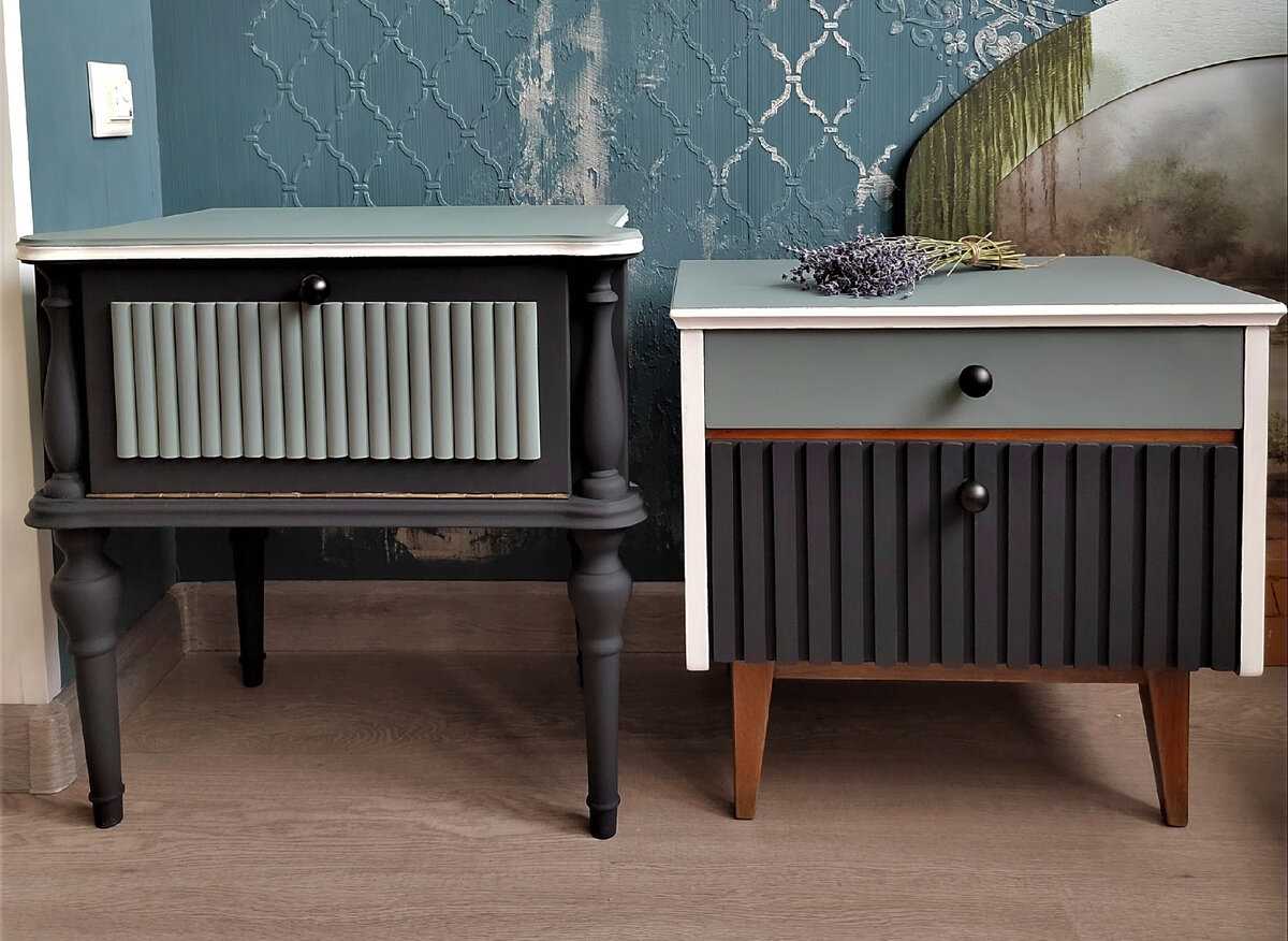 Этапы перекраски тумбы и честный отзыв от клиента: "Начинала совсем с других красок, но сейчас моя любовь - безусловно, Атури Дизайн!"