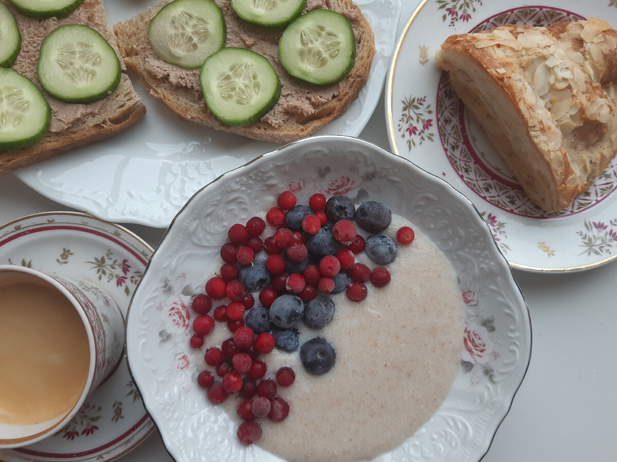 Уже третий месяц подряд мы питаемся на 178 руб в день. Это составляет 5500 руб в марте и январе, а в феврале -5000 руб. Про все свои запасы на 1 марта рассказывала ЗДЕСЬ. КАТАЛОГ РЕЦЕПТОВ - здесь все рецепты и полезные статьи по экономии, которые есть на канале Покупка продуктов №1 -Вкусвилл, Дикси Покупка продуктов №2 -Вкусвилл, Дикси, Перекресток, Верный Покупка продуктов №3 -Вкусвилл, Дикси, Перекресток Покупка продуктов №4 - Tasty Coffee, WB, Вкусвилл, Магнит, Дикси На завтрак сварила манку из полбы, бутерброды с печенью минтая с ломтиками огурца, калининградские круассаны, кофе. Манка из полбы закончилась. Часть отсыпала старшему, увез с собой. И нам оставила на один раз. Прекрасная полезная каша! Добавила бруснику и голубику. Нужно покупать, поставлю любимым продуктов во ВВ. Круассанов осталось уже по половинке к кофе. Кофе засыпала новый в кофемашину, Natti от Tasty Coffee. Красивые зерна, очень ароматный. Действительно, как описывают - с нотами шоколада и печенья. Замечательн