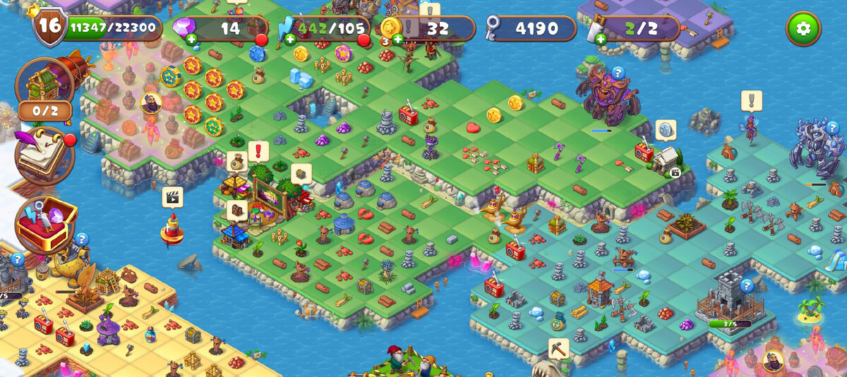 Ссылка на игру "Соединённое королевство" Итак. Добрался я до первого своего обзора игр. Это мой дебют прошу сильно не пинать. В игре вам предстоит соединять предметы и получать более прокачанные, как ни банально это бы не звучало... более прокачанные предметы. Лично моё ощущение от игры - это как будто я постоянно навожу порядок у себя в доме, а там всё время кто-то подкидывает мусора. Разработчики напичкали игру контентом по самое не балуйся. Я даже не знаю какая армия художников работает над этим проектом. Но, вернёмся к игре. Рубины. Внутриигровая валюта. Вы можете её купить за яны (валюта портала Яндекс Игры) или соединять из кучек рубиновой пыли. За рубины можно покупать предметы или даже целые острова с сокровищами. Энергия. Энергия необходима работникам для добычи ресурсов (древесина, камни, запчасти для роботов и т.д.) Ресурсы выпадают из таких вот чудиков, которых нужно "обрабатывать" работниками Из ресурсов строятся здания: Которые нужно потом перетаскивать вот в такие строен