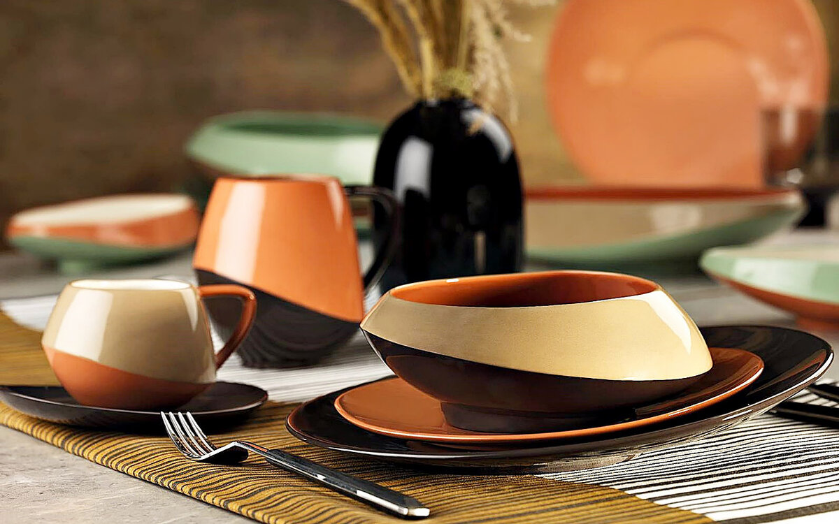 Притягательность, яркость и необычность посуды Aura воплощена в ассиметричных формах и изысканных цветовых комбинациях.