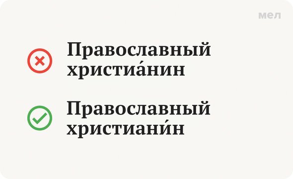 «Каждый православный христианин держит в эти дни Великий пост». Прочитайте эту фразу вслух. Где вы поставили ударение в слове «христианин»? А уверены, что это грамотно? Правильно: христианин Все словари русского языка (и орфографические, и толковые, и, самое главное, орфоэпические) дают единственно верный вариант ударения в этом слове — на последнюю букву «и». В словаре нарицательных имен «Русское словесное ударение» М. В. Зарвы дается даже отдельная пометка – [не христианин]. Почему же нам так хочется поставить ударение на предпоследний слог? Скорее всего, дело в слове «христианство», от которого образованы другие подобные слова и формы — «христианка», «христиане» и так далее. Ударение там везде ставится на букву «а» в предпоследнем слоге, и по аналогии нам хочется поставить его туда же и в слове «христианин». Но делать мы так больше не будем. Ещё больше весёлых и полезных карточек о русском языке — в «Грамотности» на «Меле» во «ВКонтакте». Подписывайтесь, чтобы всегда говорить и писа