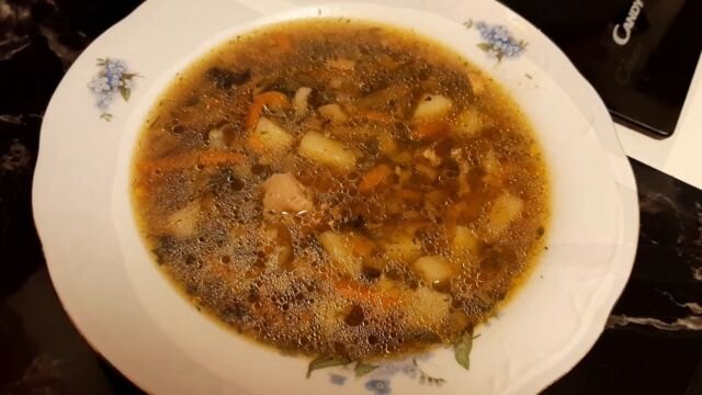 Казалось бы, что может быть необычного, в простом рецепте куриного супа с грибами. Здесь рассказан интересный способ приготовления зажарки и обработки шампиньонов. Такой вариант, помогает усилить вкус и аромат блюда. Ингредиенты: Способ приготовления: Шаг 1. Шампиньоны промойте и нарежьте небольшими кубиками. Разделите на две равные части. Разогрейте сковороду и растопите на ней куриный жир. Тушите одну часть грибов под крышкой, чтобы выделился сок. Саму жидкость выпаривать не нужно. Просто слейте ее в отдельную емкость. Шаг 2. Мелко нашинкуйте репчатый лук. Морковь натрите на мелкой терке. На сковороде растопите небольшой кусочек сливочного масла и добавьте растительное. Обжарьте овощи до мягкости. Затем добавьте грибы, обжарьте до готовности. Шаг 3. Налейте в кастрюлю воды и положите курицу, доведите до кипения, затем добавьте картофель, нарезанный кубиком. Шаг 4. Когда бульон закипит, посолите его и добавьте свежие шампиньоны. Варите 10 минут. Шаг 5. Добавьте в суп грибную зажарку,