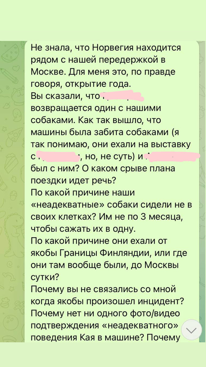 Прошли ровно сутки и (о, как неожиданно) мальчиков привозят оба эти сказочника-водителя🤡🤯 Становится понятно почему была такая странна реакция на смену адреса. Они просто расстроились, что скрыть их вранье не выйдет, а ведь они очень пытались, надо отдать им должное🥲 Два здоровых мужика (хендлер и владелец питомника догов) открывают нашей няне машину и отходят на несколько метров, якобы собаки настолько опасные, к ним нельзя подходить. Мальчишки выходят из клетки и спокойно идут домой с няней, эти двое кричат ей в след, какие ужасные-опасные собаки и быстро сваливают. Теперь расскажу как их везли. Мои собаки (два полутора годовалых кобеля амстаффа) сидели в одной (!) клетке, которая не соответствовала требованиям перевозки (слабая, расшатанная, не зафиксированная), в то время как нам обещали, что они поедут в своих клетках (в разных!) Враньё раз. К тому же, багажник забит французскими бульдогами. По телефону сначала это отрицают, потом говорят, что это уже были какие-то дру