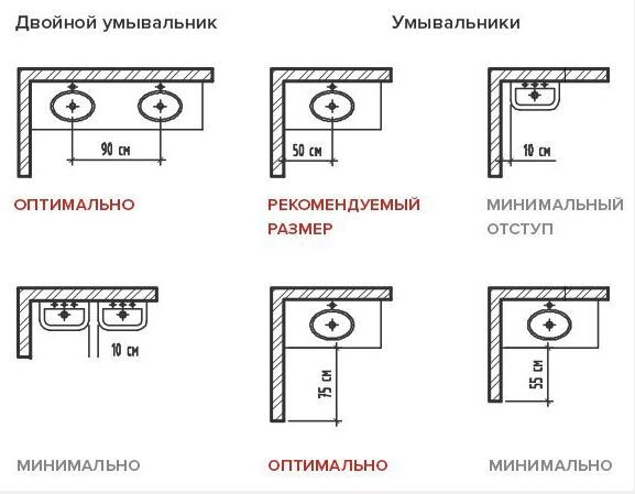 ⃣Рассчитайте высоту умывальника с учетом роста жильцов.