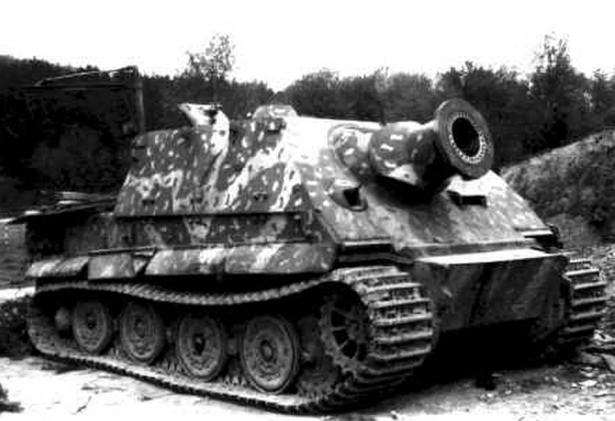 Sturmtiger или Sturmpanzer VI — немецкая бронированное орудие времен Второй мировой войны. Первый прототип машины был создан в 1943 году, серийное производство продолжалось с 1944 по 1945 год, и в итоге было выпущено всего 18 машин. «Штурмтигр» оснащен одноцилиндровым двигателем Maybach HL 230 P4 мощностью 700 л.с. Он вооружен 380-мм ракетной установкой STuM RW61, 7,92-мм пулеметом MG34 и 90-мм гранатометом. Для пуска с Raketenwerfer 61 использовалась осколочно-фугасная ракета массой 351 кг и кумулятивной массой 345 кг. При температуре воздуха +15°С и скорости ветра не более 4 м/с дальность стрельбы осколочно-фугасным снарядом достигает 5600 м. Кумулятивная ракета способна пробить слой железобетона толщиной 2,5 м. В основании снаряда имеется 32 наклонных отверстия для отвода газов от ракетного двигателя, поэтому он сообщается вращаться вокруг своей оси, что повышает устойчивость полета. Снаряд покидает ствол с начальной скоростью 40 м/с и после запуска маршевого двигателя разгоняется