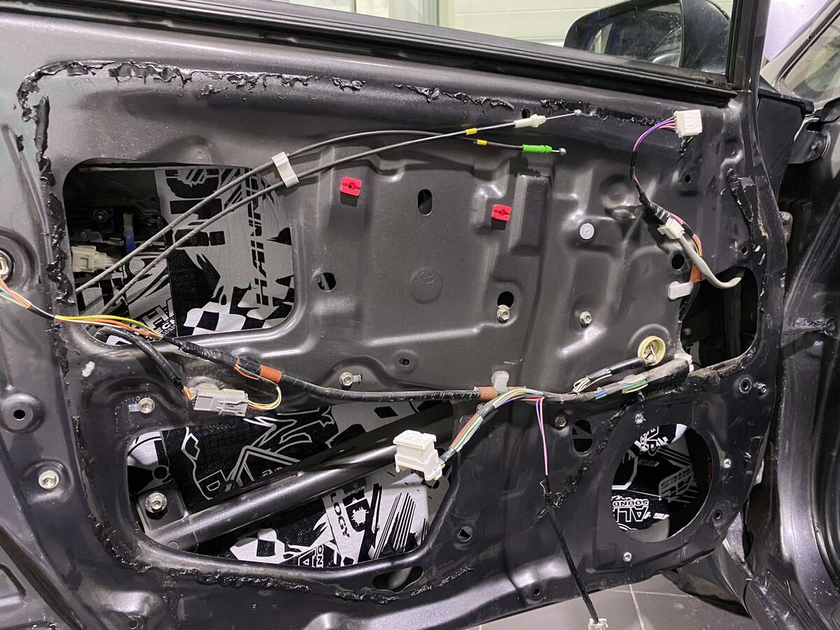 Комплекс работ на автомобиль 🚗 Toyota Auris 2007. Нашим мастерам поступила задача, сделать шумовиброизоляцию двух передних дверей и установить сабовое звено 🛠 🛠 Была выполнена шумовиброизоляция передних дверей и крышки багажника 🛠 Материалы ШВИ: