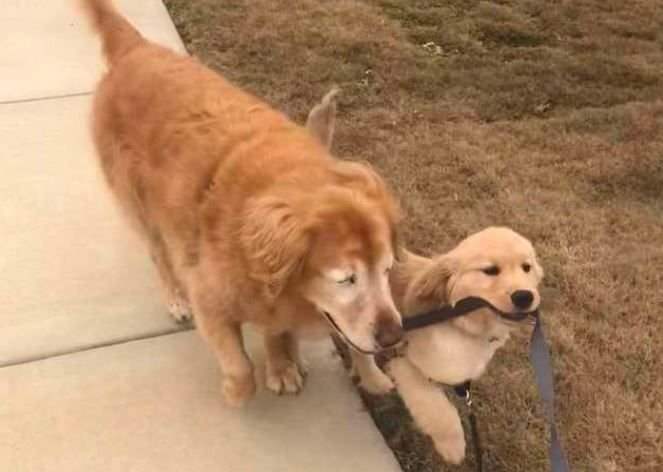 Собаке Чарли уже скоро 12 и по собачьим меркам он глубокий старик. Пару лет назад псу сделали операцию и удалили оба глаза. У Чарли была глаукома и шансов спасти глаза у лабрадора не было. После операции Чарли стал осторожным, боялся всего вокруг. Хозяева подумывали уже об усыплении пса и стали подыскивать ему замену. Так в доме Стива и Челси, хозяев собаки, появился щенок по имени Маверик. Весёлый и жизнерадостный малыш, такой же как Чарли, собачьей породы. Если больной Чарли стал уже малоподвижный, то любопытный щенок совал свой “беспокойный нос” всюду, куда мог его донести. Совсем скоро своей энергией и оптимизмом Маверик заразил и Чарли. Собаки сначала осторожно, а потом всё смелее и активнее стали проводить время вместе. Играли одними и теми же игрушками, спали рядом в одной постели и гуляли тоже вместе. Причём Маверик взял на себя роль опекуна и поводыря. На прогулке он брал в пасть поводок Чарли и осторожно выгуливал его. Как щенок догадался о проблемах со зрением у взрослой