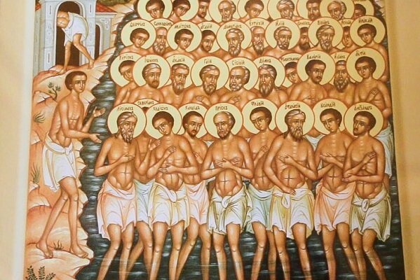Добрый день , дорогие друзья! 22 марта православная церковь и каждый православный христианин вспоминают мучеников , живших в 4 веке и пострадавших за свою веру, за веру в Спасителя. Событие произошло в городе Севастии в 320 году. 40 мучеников, 40 доблестных воина, 40 достоийных похвалы христианина были в подчинении военочальника Агриколая, который яростно отвергал веру во Христа и поклонялся языческим богам. Он потребовал от воинов отречься от своей веры и идолу принести жерву , но святые отказались. Чтобы добиться отречения от Господа, военачальник решил отправить их на жестокое испытание. Зима, мороз страшный. Святых повели связанными к озеру, которое находилось недалеко от города Севастии. Воинов раздели и поставили на лед. Приближалась ночь, ужасный холод сковал тела всех 40ка мучеников -КИРИОНА, КАНДИДА, ДОМНА, ИСИХИЯ, ИРАКЛИЯ, СМАРАГДА, ЕВНОИКА, ВАЛЕНТА, ВИВИАНА, КЛАВДИЯ, ПРИСКА, ФЕОДУЛА, ЕВТИХИЯ, ИОАННА, КСАНФИЯ, ИЛИАНА, СИСИНИЯ, АНГИЯ, АЕТИЯ, ФЛАВИЯ, АКАКИЯ, ЕКДИКИЯ (ЕКДИТА),