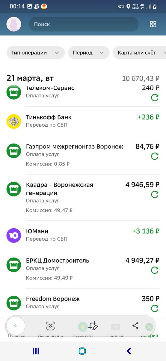Зима подошла к концу. В Воронеже сегодня +12 и даже в ленте замелькали свежие фотографии пролесков. А я вспомнила, что нужно оплачивать коммуналку. Вернее, помнить-то я помнила, но все квитанции получить никак не могла. Ждала последнюю, общую от управляющей компании. Платежек не много: от управляющей компании, за отопление от "Квадры", газ, интернет и телевидение, за которое я плачу, чтобы иногда муж мог включать старый ламповый телек, пока я работаю в спальне за компьютерным столом. От "Квадры" квитанция пришла и у меня чуть глаза не лопнули от удивления: 4946,59 руб. я заплачу за еле теплые батареи. В феврале я частенько включала обогреватель. Интернет, телевидение и газ - это копейки, около 700 руб. А вот квитанцию от управляющей я так и не получила. А там счет за горячую и холодную воду, электричество, капремонт, мусор и т.д. Хорошо, что у Сбера есть функция "Повторить платеж" - сумма всегда актуальна. И я ей пользуюсь. И знаете, я готова была плакать... Очередные 5 тысяч руб.,