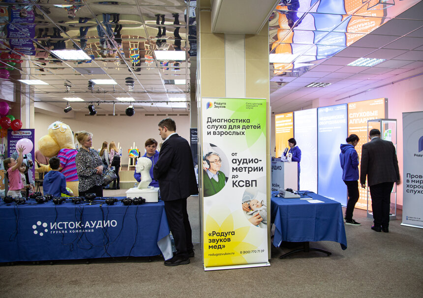 Каждый год ко Всемирному дню слуха «Радуга звуков» старается придумать для вас что-то интересное и полезное. В 2023 году, кроме акции «Нарисуем ваш слух», вместе с партнёрами мы организовали фестиваль «С заботой о слухе», который сделали увлекательным даже для тех, кто раньше в тему слуха не погружался. Фестиваль проходил в наукограде Фрязино (МО) и начался с интерактивной выставки. На каждой экспозиции можно было всё потрогать и попробовать, а кое-что — даже забрать с собой. Особой популярностью пользовался симулятор слухового аппарата. Как работает симулятор В роли слабослышащего выступает манекен с аппаратами. Они обрабатывают звук и передают в наушники. Человек надевает наушники и слышит так, как если бы сам носил слуховые аппараты. Можно почувствовать работу шумоподавления, системы направленных микрофонов и других функций. Небольшая зона, где люди знакомились с тем, как проверяют слух и как выглядит тот самый «рисунок слуха». Что находится внутри уха, какими бывают слуховые аппара