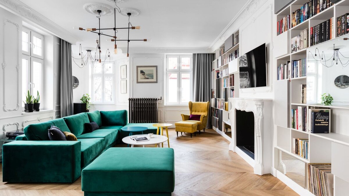В нашей новой статье мы покажем вам различные типы хранения в гостиной, дадим несколько советов и покажем красивые интерьеры с современной меблировкой. Все это поможет вам быстро сориентироваться в мире мебели и найти подходящие для своей квартиры варианты. А если у вас нет времени искать что-то — заказывайте полный дизайн-проект у нас, в студии RemPlanner. Мы точно знаем, как сделать интерьер и практичным, и красивым! При меблировке гостиной рано или поздно встает вопрос правильной организации хранения. И здесь нужно четко понимать, сколько у вас вещей и какого они типа. Не бойтесь покупать шкаф-купе или габаритную мебель другого вида, если вам действительно нужно хранить здесь одежду. Просто ставьте всё крупное далеко от окна, поближе к двери, а вот малогабаритную мебель можно оставить на виду. Если же вам не нужно хранить много вещей, купите тумбу и стеллаж, тумбу и библиотеку или тумбу и консоль. Еще можно взять кофейный и приставной столик к дивану. Хотите быть уверенным, что мебе