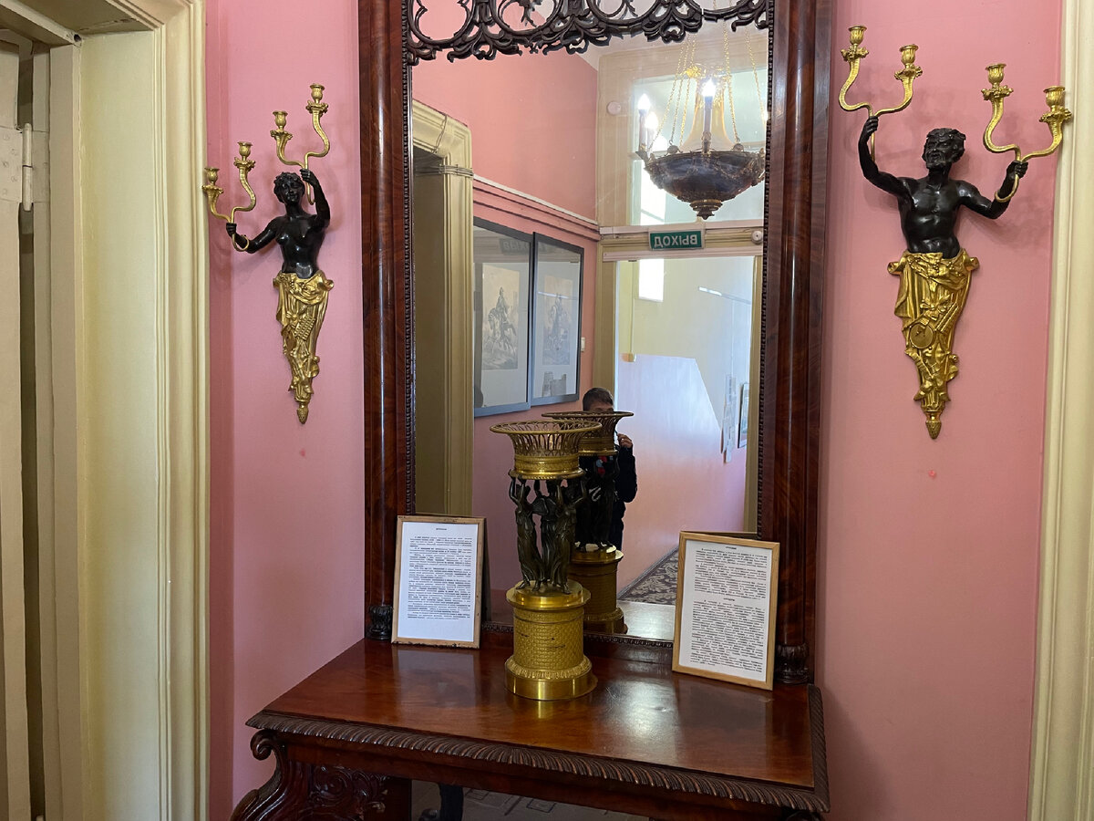 Сегодня побывали в этом замечательном маленьком музее. Вопросы решили быстро. Если вы не успели посетить это музей в этом сезоне, то можно пройти его оналайн. Ниже представляю вопросы для учеников 3-4 класса Вопрос 1. В прихожей под зеркалом найдите женские фигурки, которые держат вазу. Найдите то, что отличает их от обычных девушек. Вопрос 2. Найдите и запишите, какие музыкальные инструменты изображены в прихожей на больших настенных светильниках в виде героев древнегреческих мифов (ответ выше на фото) Вопрос 3. какие старинные вазы есть в музее и где они стоят Вопрос 4. Найдите в кабинете писателя все способы обогрева помещения (из разных эпох). тут нужно быть очень внимательным (их 3 но фоток будет 4 что то лишнее нам попалось ) Вопрос 5. Какой знаменитый правитель российского государства изображен на вышитых картинах, висящих в коридоре справа от входа в кабинет? Вопрос 6. Буратино, сидящий на диване в гостиной-столовой писателя, не игрушка, а настоящий маленький артист.