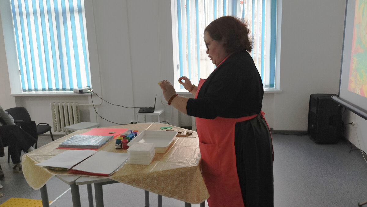21 марта 2023 года в «Инклюзивном коворкинге» 8-го корпуса СКФУ в рамках Фестиваля инклюзивной культуры, состоялся мастер-класс рисования на воде «Эбру для всех». Ведущей мастер-класса выступила Федорюк Анастасия Хвычевна, студентка-магистрант СКФУ по направлению подготовки «Специальное (дефектологическое) образование. В переводе с турецкого Эбру значит «облачный», «волнообразный». Суть данного способа заключается в том, что вода и краски имеют разную плотность, за счет чего они не растекаются и не растворяются, а оставляют на поверхности рисунок в виде тонкой пленки. После создания рисунка на воде он аккуратно переносится на бумагу, дерево или другие поверхности. В процессе работы сложно предугадать, как растечется краска, поэтому каждая композиция получается оригинальной и неповторимой. Рисование на воде Эбру означает, что поверхностью для нанесения узора буквально служит жидкость. Правда, это не обычная вода, да и краски тут нужны специальные. Увлекательно и захватывающе ведущей был