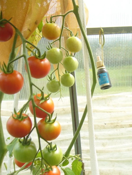 Наверное, многие из вас замечали в теплицах у своих знакомых висящие по периметру пузырьки с йодом. Однако, они есть далеко не у всех, даже у тех огородников, что ратуют за экологически чистое выращивание овощей на своем огороде часто нет этого довольного эффективного средства от фитофторы, которой так подвержена любимая многими тепличная культура. Да и профилактикой этой проблемы достоинства йода не заканчиваются. Одна из важнейших особенностей йода - он помогает томатам лучше усваивать азот. А это, в свою очередь, дает возможность отказаться от азотных удобрений, с которыми, кстати, очень просто переборщить. Еще одно полезное свойство этого препарата - если в теплице висят пузырьки с йодом (а на среднюю теплицу нужно, как минимум, 8 пузырьков), то урожай будет больше, потому что йодные испарения способствуют лучшей завязи плодов. А еще они делают цвет плодов ярче. В общем, не йод, а сплошная польза для урожая. Тогда почему эти пузырьки не висят в каждой теплице? Не будем здесь рассма