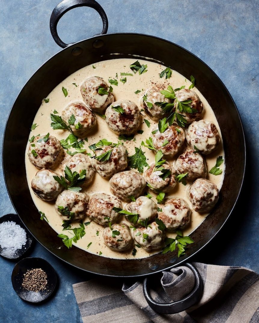Фрикадельки из говяжьего фарша, такие же прекрасные, как и икеевские, если не лучше. Мясные шарики быстро обжариваются в масле, после чего тушатся в сливочном соусе вместе с говяжьим бульоном. Время готовки: 25 минут. Ингредиенты на 4-5 порций: - 500 грамм говяжьего фарша. - 80 грамм панировочных сухарей. - 1 маленький репчатый лук. - 50 мл молока. - 1 яйцо. - 1 чайная ложка вустерширского соуса. - 1 чайная ложка соли. - Половина чайной ложки свежемолотого чёрного перца. - 1 столовая ложка оливкового масла. Для приготовления соуса: - 2 столовые ложки сливочного масла. - 2 столовые ложки муки. - 300 мл жирных сливок. - 200 мл говяжьего бульона. - Петрушка для украшения. Приготовление 1. Смешайте говяжий фарш, панировочные сухари, измельчённый лук, молоко, яйцо, вустерширский соус, соль и перец и оставьте на 15 минут в миске. Затем сформируйте шарики размером 4-5 см. 2. Разогрейте оливковое масло в большой сковороде на среднем огне и обжарьте фрикадельки со всех сторон до золотистого цве