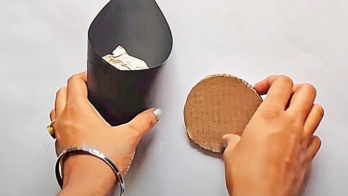 Покажу как из бумаги сделать необычный букет который смотрится классно, почти как настоящие. При этом не нужно покупать подарок в магазине и отдавать за это много денег. Будем делать букет роз Для этого нам потребуется: Возьмите черный лист бумаги и сделайте из него квадрат. Потом скрутите, что бы получился конус, закрепите клеем ПВА. После нам потребуется наполнитель в виде бумаги, газеты. Скрутим в несколько клубков и утрамбуем почти под самый вверх. Делаем круг из гофрокартона, и получаем заглушку, которую мы должны поместить плотно к нашей уплотнительной бумаге. Перед этой процедурой, по размеру круга гофрокартона, делаем такой же круг из цветной бумаги желтого цвета. Приклеиваем желтый круг на гофрокартон. Проклеиваем торцы гофрокартона ПВА клеем и укладываем плотно. Следующий этап: создание цветка Подготовим 5 кружков из желтой бумаги. Из них получится красивый цветок. Складываем кружок в 3 раза и нарисуем лепесток, это будет нашим контуром для реза. Посмотрите другие фото потяну