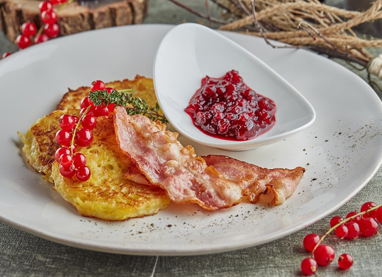 Держите их теплыми на противне в духовке. Морковь очистить и нарезать соломкой. Нарежьте и обжарьте свинину на растительном жире на сковороде примерно по 2 минуты с каждой стороны. Подавайте свинину с ржаными пончиками, морковью и брусничным джемом.