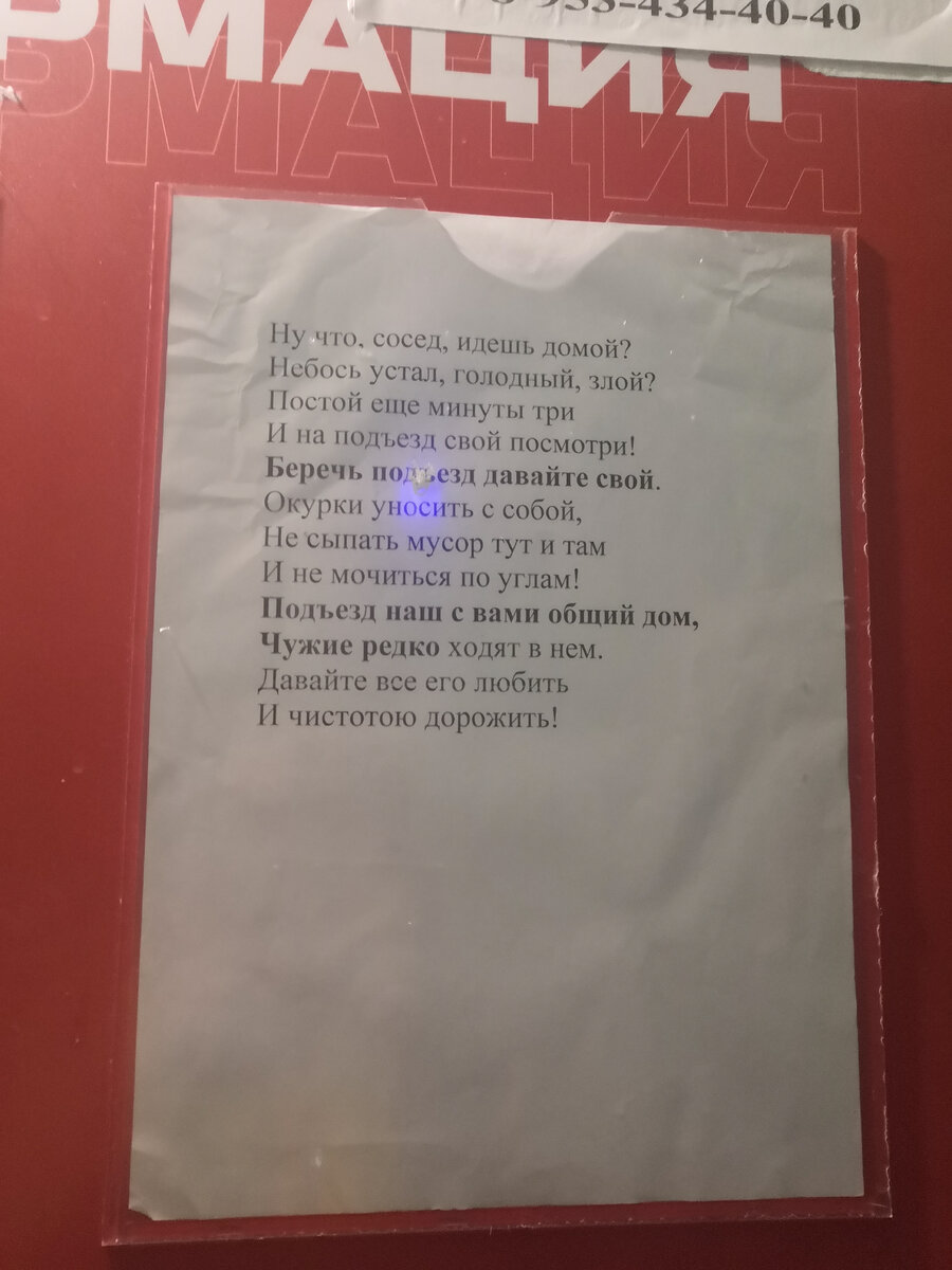 Благодаря дочке-курьеру у меня быстро набралась новая порция фоток из подъездов. Нередко там можно видеть всякие призывы к порядку. И иногда довольно оригинальные: Когда жильцы добиваются чистоты в своих подъездах, они переходят на новый уровень желаний - хотя бы минимально украсить пространство. Порой, правда, в роли украшения выступают случайные ненужные вещи, и получается очень эклектично: Кому-то было лень выбрасывать кресло на улицу, и человек организовал целую лаунж-зону напротив лифта: Правда, медальон на стене странненький, но зато смотрится весело: Бывает, что жильцы вкладываются в облагораживание подъезда более капитально, разрисовывают стены. Посмотрите, как здорово написана козочка: Иногда на стенах развешивают рисунки: А кто-то даже выпиливает фигурки для всех этажей: В общем посещение чужих подъездов бывает увлекательным, а иногда и поддерживает праздничное настроение: В конечном счёте, как бы ни выглядели приукрашенные жильцами общественные пространства, здорово, что