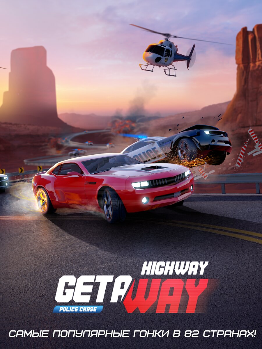 Highway Getaway — это интересный вариант казуальных автомобильных гонок для Android от издательства Vivid Games S.A. Игра получила качественное графическое оформление с элементами 3D, отличную анимацию, неплохие спецэффекты и вполне приличное звуковое сопровождение. Смысл геймплея заключается в преодолении максимального расстояния по очень загруженному шоссе. Кроме того, за нами гонится полиция и опасность исходит не только от преследователей, но и от тех полицейских, которых мы постепенно догоняем.