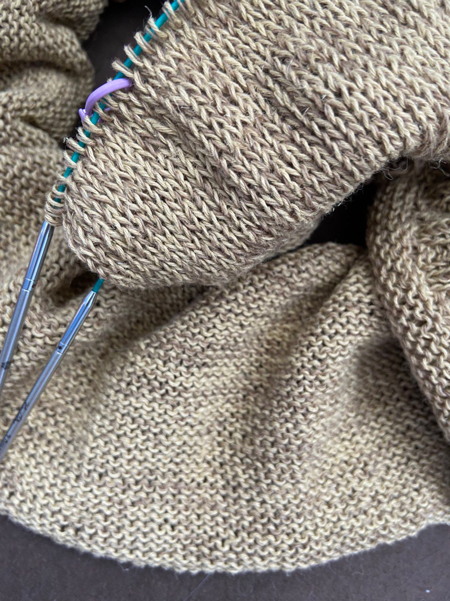 Часто встречаю разные мнения по поводу того, насколько правильно вязать плотно или "расхлябанно". У меня есть своё мнение на этот счёт - хочется поделиться. Вспоминая своё начало вязания - в далёких 80-х - на спицах ограниченного размера (собственно, были у нас только 3.5 круговые и 1.5 чулочные) можно сказать, что плотность вязания обычно регулировалась только степенью натяжения нити руками и/или выбором нитей (потолще, потоньше). Сильно , как говорится, не разгуляешься. Но именно тогда , думаю, я научилась определять желаемую плотность по полотну. Сейчас любая вязальщица может подобрать спицы для желаемой плотности. Не секрет, что разный материал спиц одного и того же размера даёт разную плотность. К примеру, у меня сейчас на спицах "кольчужка" (название муж придумал). Начинала я её резинкой 2*2 на 3-ке KnitPro Mindful (это стальные спицы). В лицевую гладь перешла на 3,25 сталь. Плотность достаточно плотная. Простите за тавтологию. По ходу придумала объяснение: как я определяю для се