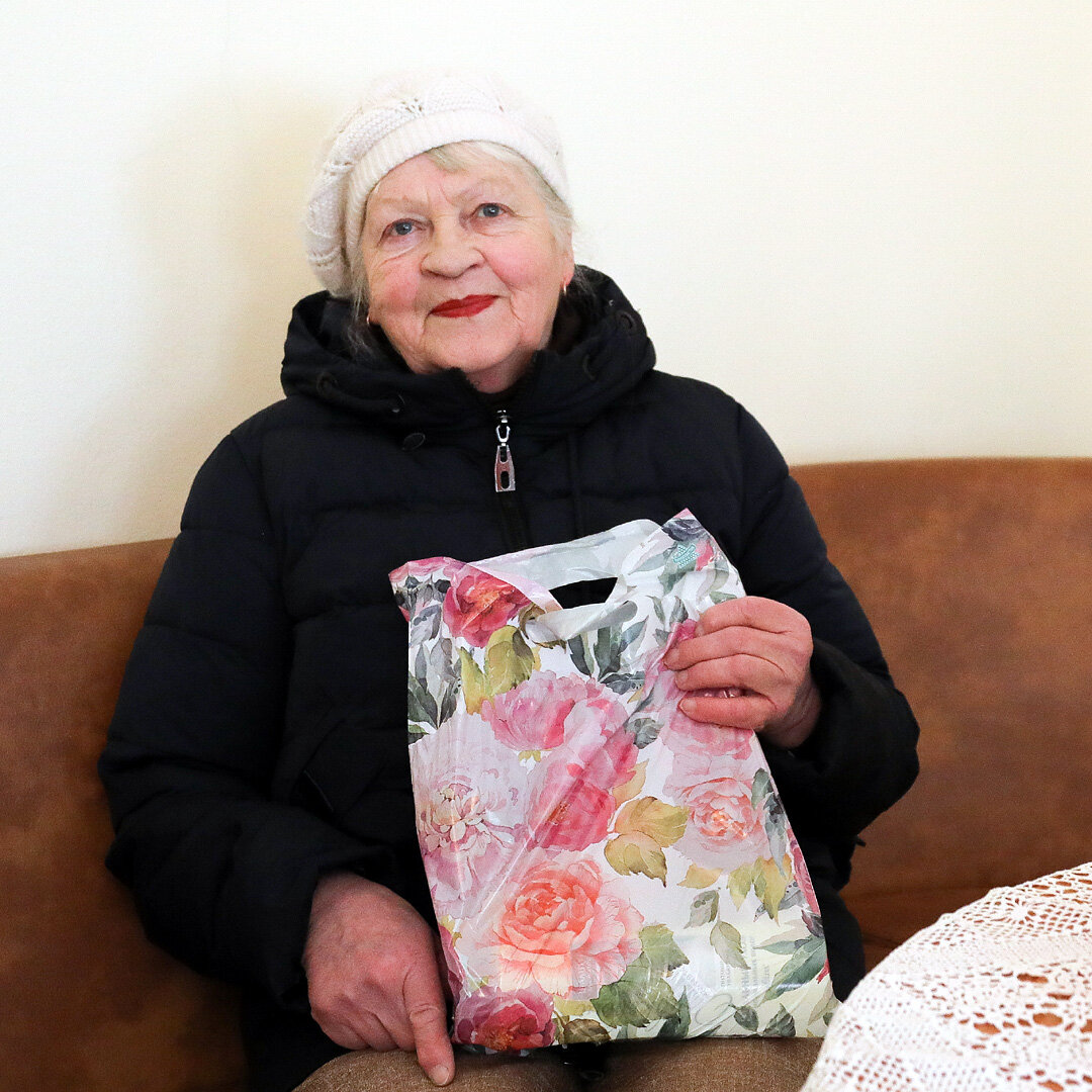 Ольга Владимировна и свои 77 лет невероятно позитивный неунывающий человек. Мы помогаем ей буквально с первого дня существования фонда. Для нее самое важное в такой подарке то, что она не забыта, что какой-то совершенно незнакомый человек остановился и решил позаботиться о ней, собрал подарок с трепетом и любовью.