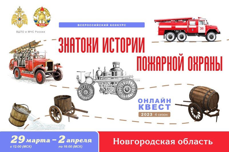 Принять участие в онлайн-квесте «Знатоки истории пожарной охраны. Новгородская область» может любой желающий в индивидуальном формате в любое время с 12:00 (мск) 29 марта 2023 по 16:00 (мск) 2 апреля 2023.