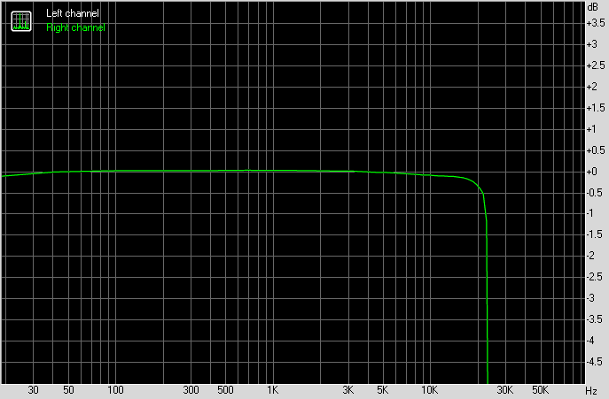 Условия тестирования: Питание усилителя +-48 Вольт Нагрузка резистор 4 Ома Амплитуда сигнала на резисторе 40 Вольт Мощность RMS 200 Ватт Тест RMAA: Неравномерность АЧХ (в диапазоне 40 Гц - 15 кГц), дБ +0.03, -0.13 Уровень шума, дБ (А) -97.1 Динамические диапазон, дБ (А) 96.6 Гармонические искажения, % 0.074 Гармонические искажения + шум, дБ(A) -60.6 Интермодуляционные искажения + шум, % 0.068 Интермодуляции на 10 кГц, % 0.050 Общая оценка Хорошо Теперь перейдём к графикам: АЧХ усилителя: Уровень шумов: График гармонических искажений: Это более дорогая версия усилителя, разница + 500 Руб к стоимости самой простой версии. Небольшая разница в схемотехнике.