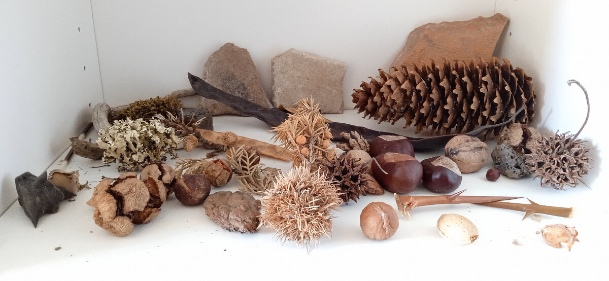 Это каштаны. Их у нас немного, всего три. Но как декорация для полки очень хорошо смотрится.