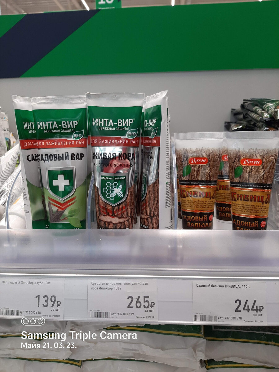 Садовый вар и Живая кора очень твёрдые и плотные, работать с ними наверное не очень удобно, а вот справа в маленьком тюбике Садовый бальзам мягкий, его я и выбрала.