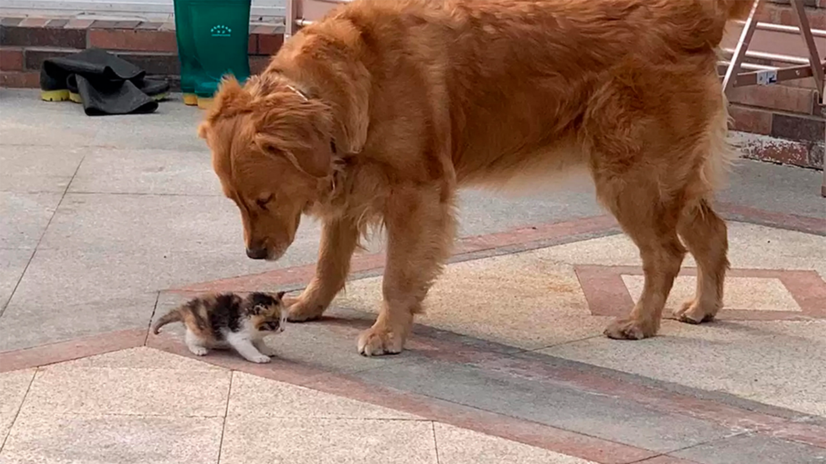 Американец Зак Хин как обычно вышел на прогулку со своими собаками. Ничего не предвещало беды, пока питомцы внезапно не убежали. Мужчина не успел опомниться, как уже через несколько минут собаки вернулись — но не одни. Рядом с огромными псами шел крошечный брошенный котенок. Каждый раз, когда малыш останавливался, то же самое делали и собаки. Они просто отказывались идти дальше без него и в итоге привели котенка домой — хозяину пришлось смириться с новым питомцем. Мужчина взял котенка на руки и осмотрел — малыш был совсем маленьким, ему максимум исполнился месяц. Зак решил забрать котенка себе, а не искать новых хозяев, ведь его собаки за столь короткое время уже привыкли к малышу. Теперь котенок живет под охраной двух больших братьев, которые заботятся о нем и никогда не оставляют одного.
