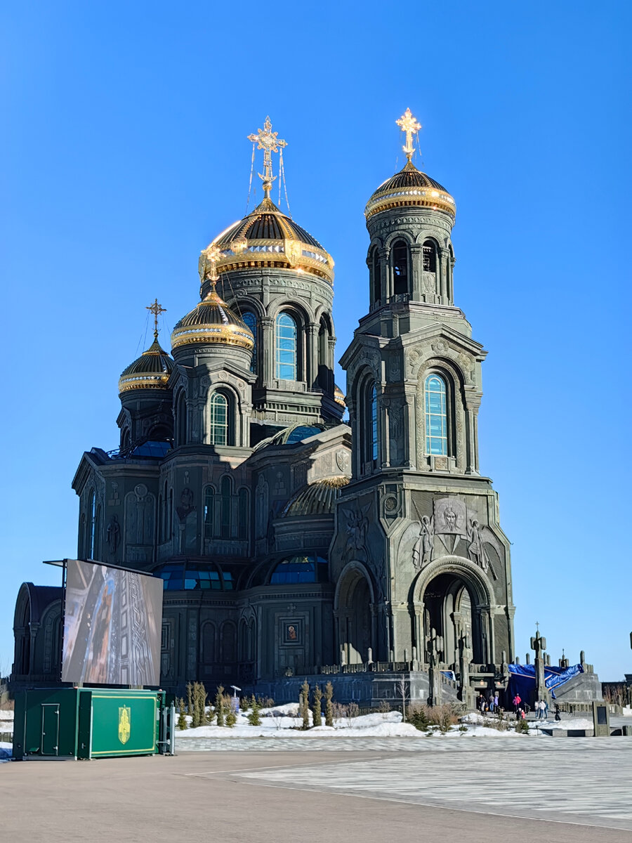 Доброго всем дня. Наконец в выходные добрались до парка Патриот в Одинцовском районе Москвы. В самом парке мы были ранее вместе с детьми: прошлись по выставке техники под открытым небом, посетили музейный комплекс исторический современный, партизанскую деревню и это далеко не все представленные локации. Остались под большим впечатлением, масштабы парка потрясают: от одного места до другого иногда удобнее на велосипеде передвигаться. Довольные и уставшие уезжали, но главную жемчужину парка Храм Военных Сил России не посетили. Именно он и был целью нашей поездки на этот раз. Ещё немного не закончен Карильон, арка-звонница в начале Музейно-Храмового комплекса. Но даже в таком виде сооружение поистине монументально и выглядит единым целым с самим Храмом, так как именно через арку Вы впервые видите сам Храм. Уже на парковке через громкоговоритель Вы услышите транслируемую музыку, которая ещё больше придаёт ощущение благоговения и благодарности, которое не покидает потом ни на секунду. В са