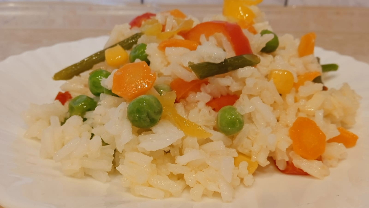 Прекрасно подойдёт в качестве гарнира, либо как самостоятельное блюдо. Похоже на магазинную мексиканскую (или гавайскую) смесь, только гораздо вкуснее! Нам понадобится: Для заметки: Хорошо использовать как свежие, так и замороженные овощи (как в моём случае). По Вашему вкусу можно экспериментировать с овощами, например, вместо кукурузы и чесночных стрелок, добавить стручковую фасоль или брокколи. Как готовить: Отварим в подсоленной воде рис (я использовала в пакетиках, так удобнее и быстрее). Обжарим на растительном масле нарезанные лук и морковку (кружочками или кубиками, кому как больше нравится). Добавим болгарский перец, чесночные стрелки, посолим и пожарим ещё минут пять. В конце добавим зелёный горошек, кукурузу и зубчик чеснока. Получится красивое овощное ассорти. К нему добавим рис и потомим ещё пару минут, чтобы рис пропитался маслом. Наш рис с овощами готов, можно подавать к столу. Приятного аппетита! Если Вам был интересен этот рецепт, ставьте лайки, пишите комментарии