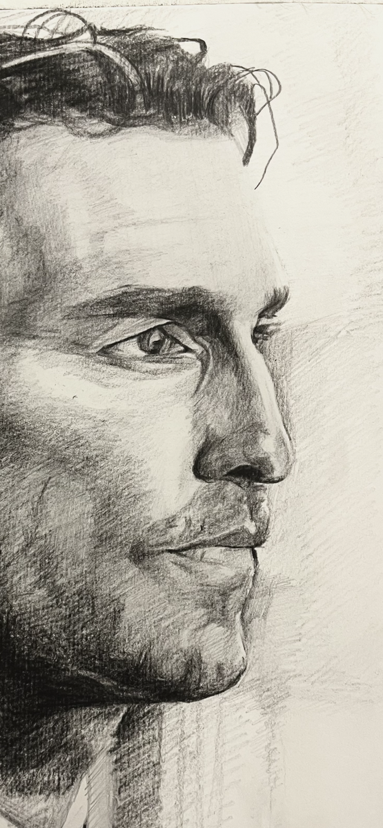 Пошагово рисуем Мэттью Макконахи 😏 Что нам понадобится: Итак, все подготовили и можем приступать. Начинаем с наброска композиции, намечаем, какую часть листа будет занимать лицо Теперь нам надо обозначить пропорции. Я всегда начинаю с того, что приблизительно нахожу линию глаз, чтобы от них начинать все построение с бровей. Да, именно от бровей идут все измерения, а глаза можно добавлять в последний момент, хотя всем не терпится заняться именно ими. Пусть это будет вишенка на торте 🍰 Теперь от бровей мы переходим к носу. Не стоит уходить в детали! Помним, что мы идем от большего к меньшему, начиная с основ. Когда они будут намечены, можете ковыряться в каждой линии сколько хотите. Но ведь очень обидно, когда ты сразу нарисовал потрясающую ноздрю, а потом она оказалась меньше чем должна была быть, и приходится ее стирать. Так вот, касаемо носа. От бровей мы ведем линии выступающей части прямо к кончику. Намечаем перпендикулярно, где у нас будут границы ноздрей. Слегка обозначае